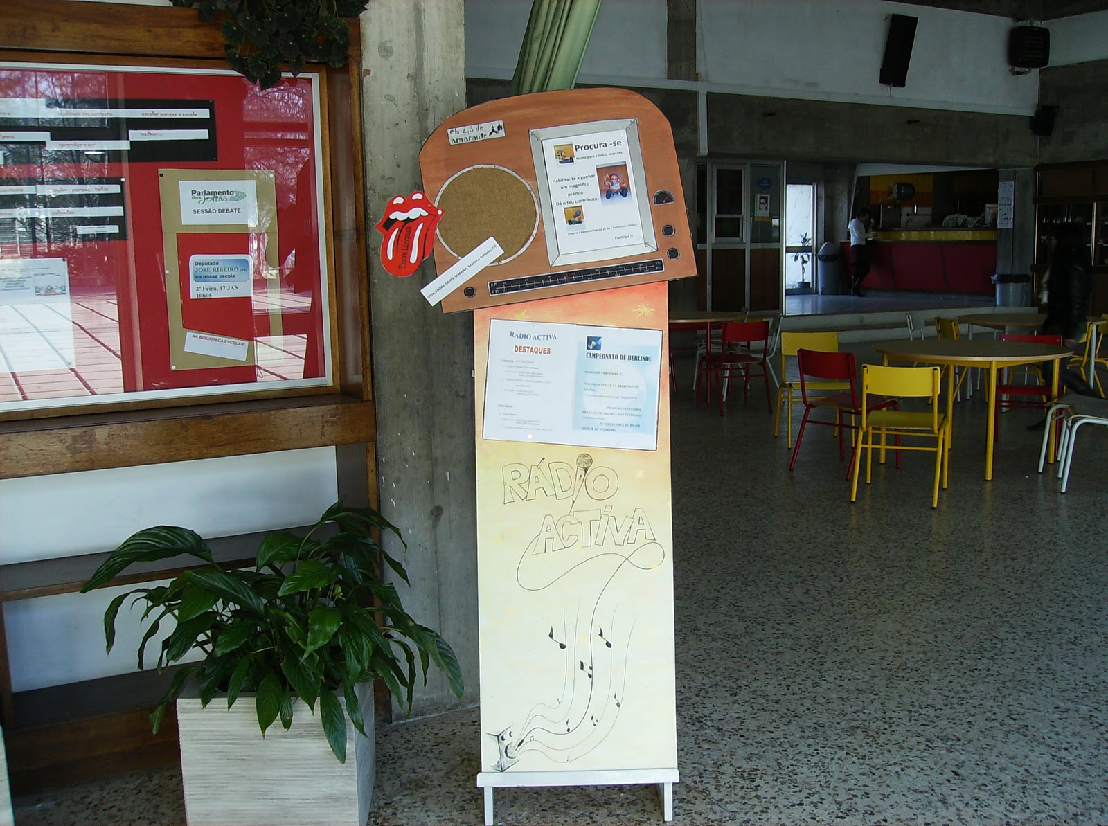 A concepção deste placard bem como do "logo" da radio é da responsabilidade do Professor Camilo que lecciona EVT nesta Escola.